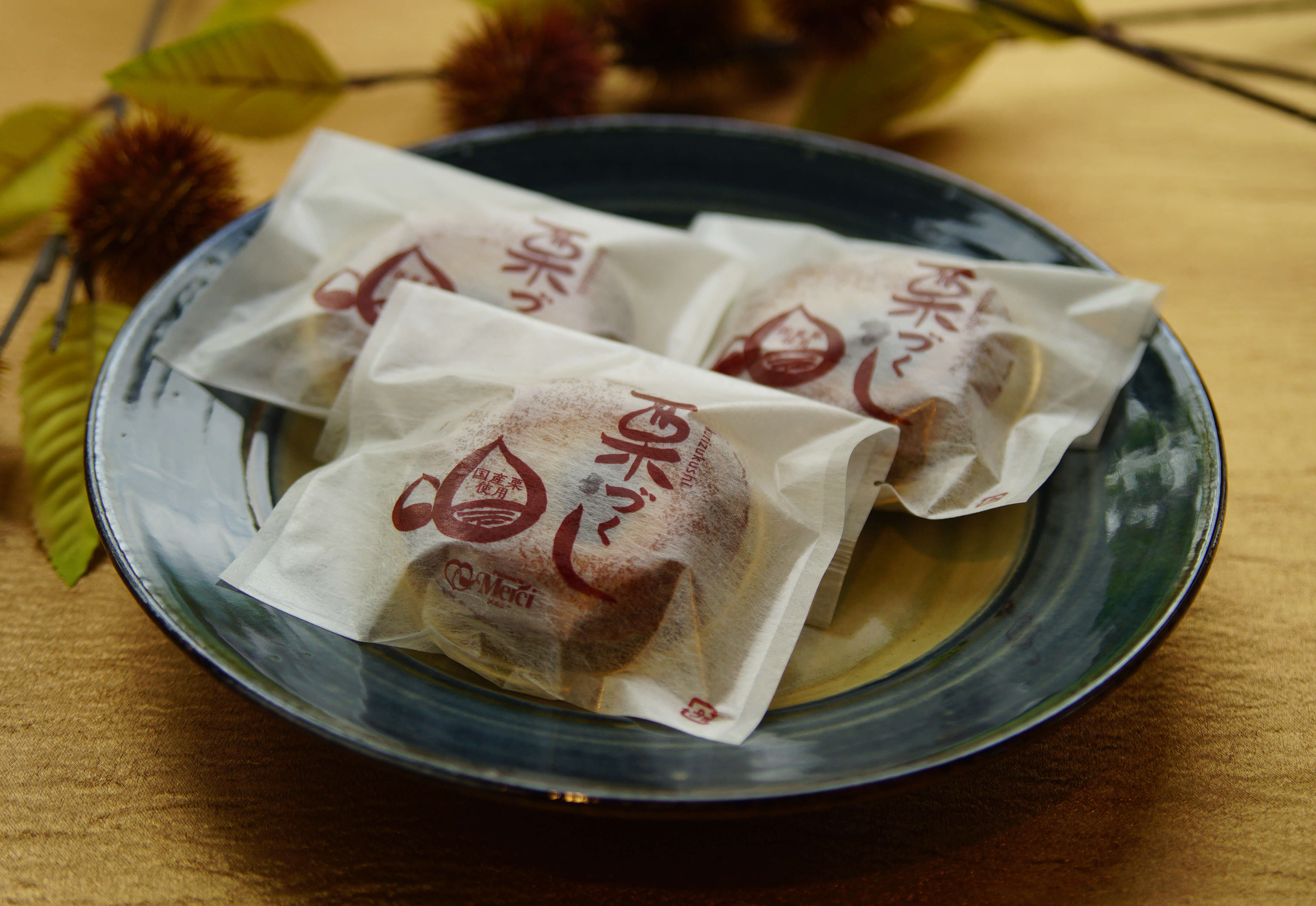 国産栗の栗きんとん風生地で、高級な国産栗の渋皮煮を包んで焼き上げた贅沢なお菓子です。